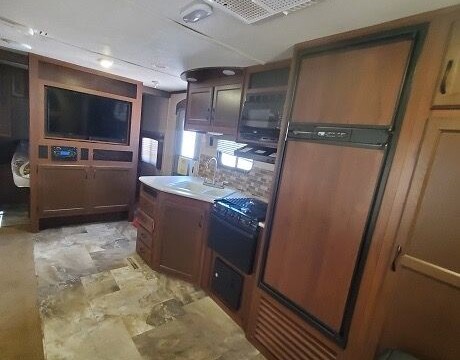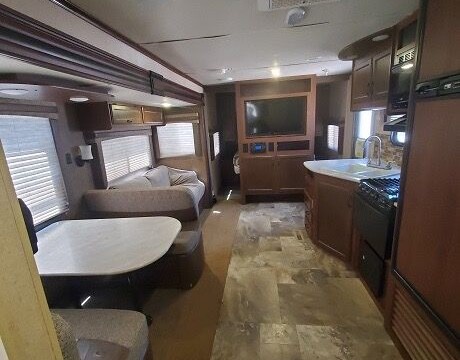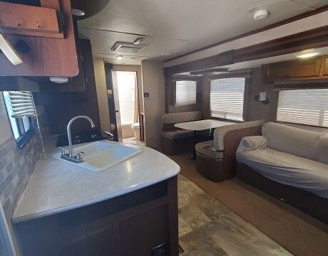 The chance to take a unique vacation is something you’ll never forget, and with an RV rental in Parker, Arizona, we can offer you a chance to fall asleep in natural surroundings with all the comforts of home. This 2015 28′ travel trailer is one great way to do it. A Jayco Jay Flight model, it includes a large slide out so you’ll have lots of space, a private bedroom with a queen bed, double bunk beds, and extra sleeping space thanks to the dinette and sofa fold out beds. Add that to a spacious living area, plenty of kitchen and bathroom space, and a fold out awning to help protect you from the sun, and you have a Colorado River vacation spot you’ll never forget!