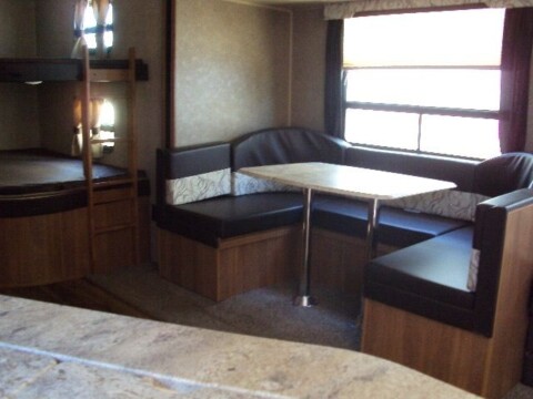 Looking for a perfect vacation? Our RV rentals in Lake Havasu City mean a chance to spend time with each other like you never have before, and this 29′ travel trailer is the perfect way to do just that with family and friends. This model offers sleeping space for between six and eight people. A private bedroom includes a queen bed, and there’s also a dedicated space for double bunks. Both the dinette area and sofa fold into beds as well. There’s plenty of living area space, and it offers dual entry, too! This is a great RV rental in Parker Arizona you won’t want to miss.