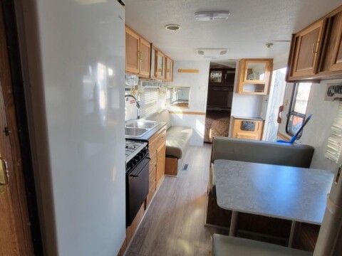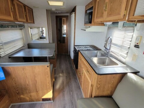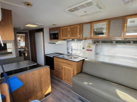 Hoping for lots of fun on your upcoming vacation? This 1997 travel trailer model is one of the best RV rentals in Lake Havasu City we have to offer. Featuring 29′ of space, it’s perfect for your friends and family. Inside you’ll find a private bedroom complete with a queen bed as well as a second bedroom with two single bunks. Both the dinette and the sofa fold out into beds as well. With a kitchenette big enough to prepare more than just a few sandwiches and a comfortable bathroom space, this is one Colorado River RV vacation add-on you won’t regret.
