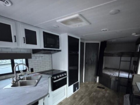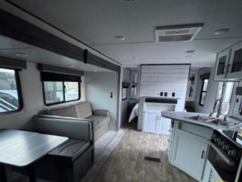 The chance to take a unique vacation is something you’ll never forget, and with an RV rental in Parker, Arizona, we can offer you a chance to fall asleep in natural surroundings with all the comforts of home. This 2023 30′ travel trailer is one great way to do it. A HIdeout model, it includes a large slide out so you’ll have lots of space, a private bedroom with a queen bed, double bunk beds, and extra sleeping space thanks to the dinette and sofa fold out beds. Add that to a spacious living area, plenty of kitchen and bathroom space, and a fold out awning to help protect you from the sun, and you have a Colorado River vacation spot you’ll never forget!